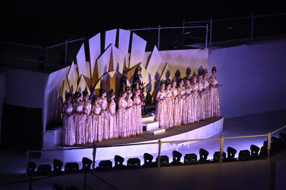 A lo largo de distintos cuadros del espectáculo también participaron sobre el escenario las reinas departamentales, junto con la Reina y la Virreina Nacional de la Vendimia 2025, quienes se sumaron a las coreografías acompañando el desarrollo de la historia y aportando un momento especial de celebración y representación vendimial.