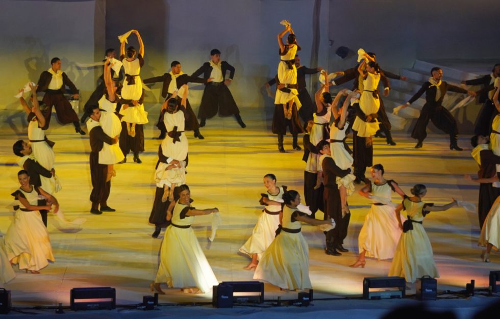 En el cuadro final del espectáculo, los bailarines utilizaron vestuarios de color rosa viejo, en alusión a la piedra granito, símbolo del 90° aniversario. Este detalle escénico representó la solidez y la eternidad del amor, reforzando el mensaje de permanencia y continuidad que caracteriza a la Fiesta Nacional de la Vendimia.