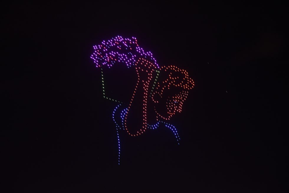 Tras finalizar el espectáculo artístico, el cielo del teatro se iluminó con un show de drones, a cargo de Iluxman Artistic Development, que sorprendió al público con distintas figuras vinculadas a la historia y la identidad vendimial. Entre ellas se destacaron las representaciones de Delia Larrive Escudero, la Virgen de la Carrodilla, el general José de San Martín y diversas copas de vino, que brillaron sobre el cielo mendocino como cierre visual de la celebración.