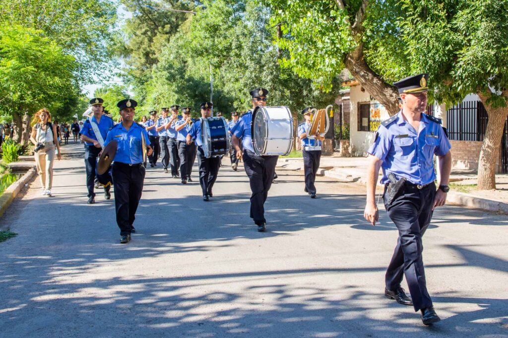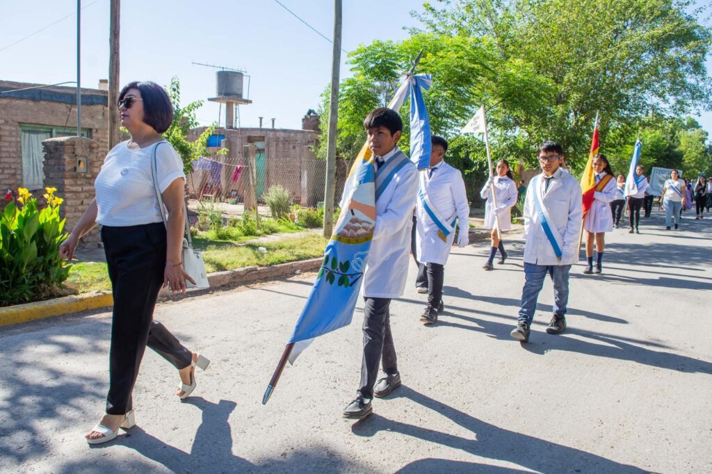 La jornada comenzó con un desfile que recorrió las calles Bayo, Molina y Mayorino Palacios, uniendo al Centro Integrador Comunitario (CIC) con la Plaza Tres Porteñas, donde se realizó el acto protocolar.