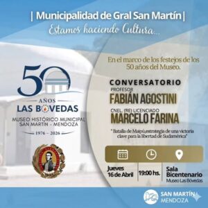 En el marco de los festejos por el 50° aniversario del Museo Histórico Municipal Las Bóvedas, se realizará un conversatorio titulado Batalla de Maipú: estrategia