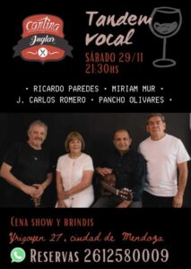 La Cantina del Juglar será escenario de una noche especial con la presentación de Tándem Vocal, un proyecto integrado por Ricardo Paredes, Miriam Mur, J.