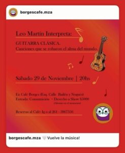 El próximo sábado 29 de noviembre a las 20 hs., el músico Leo Martín ofrecerá un recital de guitarra clásica en Café Borges. El espectáculo,