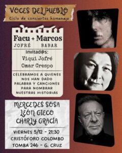 Facu Jofré y Marcos Babar interpretarán obras de León Gieco, Charly García y Mercedes Sosa, pilares fundamentales de los sonidos nacionales. La cita será el