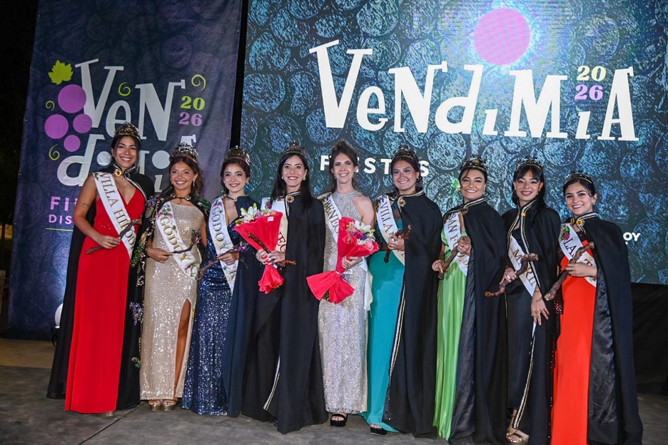 Asimismo, cinco candidatas llegaron a la instancia final, donde el público votó mediante el sistema electrónico. Además, la reina saliente, Julieta Paredes, dedicó palabras de apoyo y reconocimiento a quienes continúan el camino vendimial.