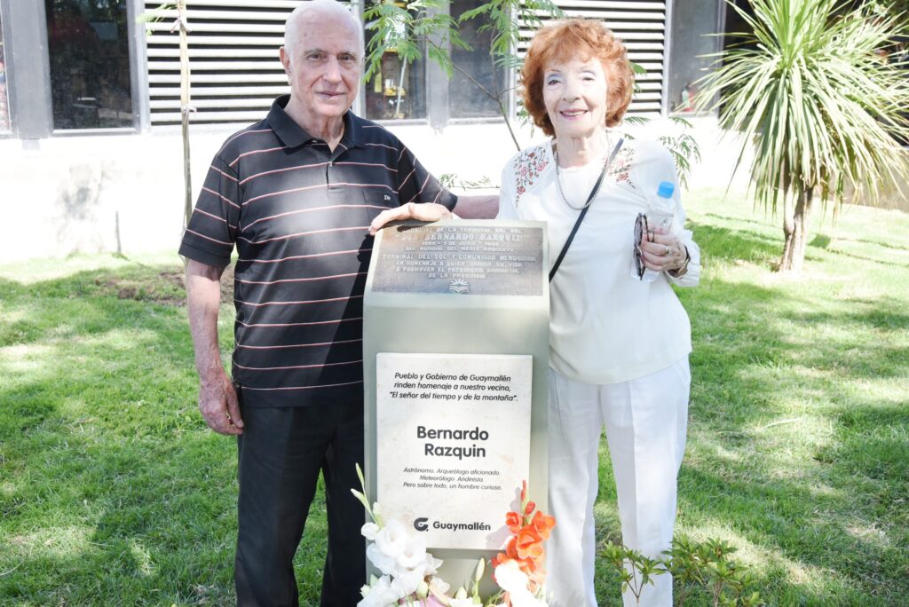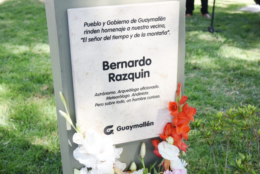 Además, recordando su legado, se plantó un árbol en su memoria. «Pueblo y gobierno de Guaymallén, rinden homenaje a nuestro vecino ‘El Señor del Tiempo y la Montaña’ Bernardo Razquin, astrónomo, arqueólogo aficionado, meteorólogo, andinista, pero sobre todo, un hombre curioso», se lee en la placa conmemorativa.