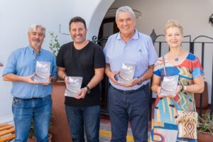 En la mañana del jueves, en la intendencia municipal, el secretario de Gobierno, Mauricio Petri, y el director de Cultura, Alfredo Lafferriere, recibieron al escritor