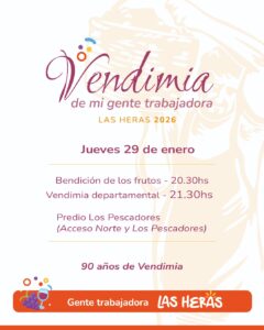 La Municipalidad de Las Heras trasladó La Bendición de los Frutos para el próximo viernes, junto a la Vendimia departamental. Debido a la alerta por