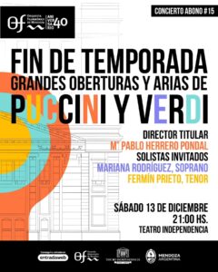 El sábado 13, a las 21 hs., el Teatro Independencia (Chile 1184, Ciudad de Mendoza) será el escenario del concierto “Grandes oberturas y arias de