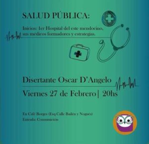 El próximo viernes 27 de febrero a las 20 horas se realizará la charla “Salud Pública: Inicios: 1er Hospital del este mendocino, sus médicos formadores