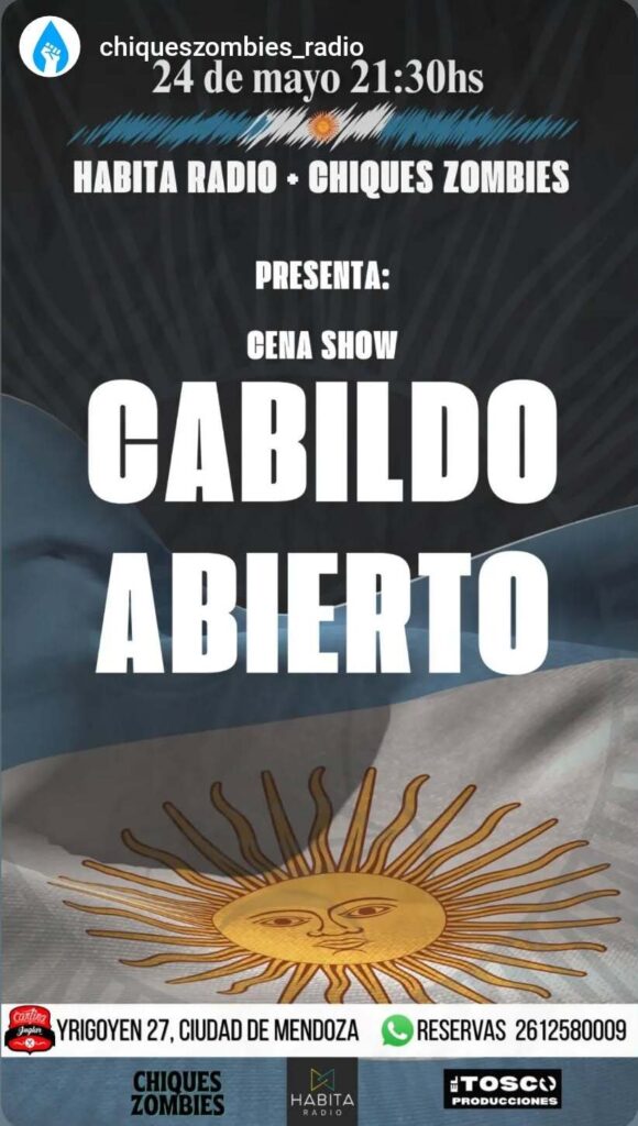 En el marco de las celebraciones por la Semana de Mayo, las agrupaciones Habita Radio y Chiques Zombies se complacen en anunciar su próximo evento conjunto: una exclusiva Cena Show denominada “Cabildo Abierto”.