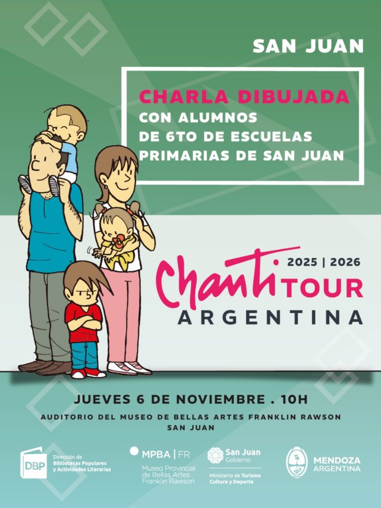 Con el apoyo de la Subsecretaría de Cultura, esta gira nacional invita a conocer el fantástico mundo de Santiago González Riga “Chanti” y sus más entrañables personajes. Este ciclo de charlas permite mantener el contacto con su público y, sobre todo, dialogar con sus admiradores más pequeños. Cuenta con más de 50 libros editados, entre ellos “Mayor y Menor”, “Facu y Café con Leche” y “Payunia City”, entre otras publicaciones.