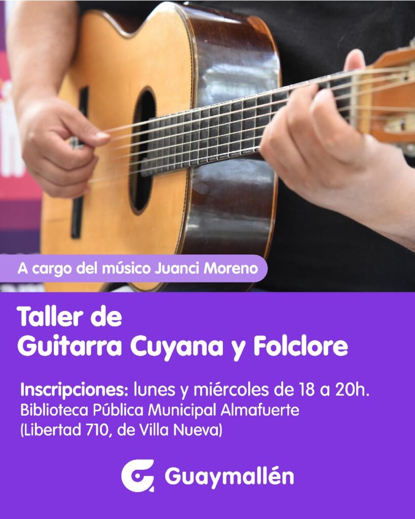 La Municipalidad de Guaymallén abre las inscripciones para un Taller de Guitarra Criolla y Folclore, a cargo del músico Juanci Moreno. Esta propuesta formativa, abierta al público en general desde los 12 años, invita a iniciarse y profundizar en los ritmos tradicionales de la región cuyana, así como en otros géneros del folclore argentino.