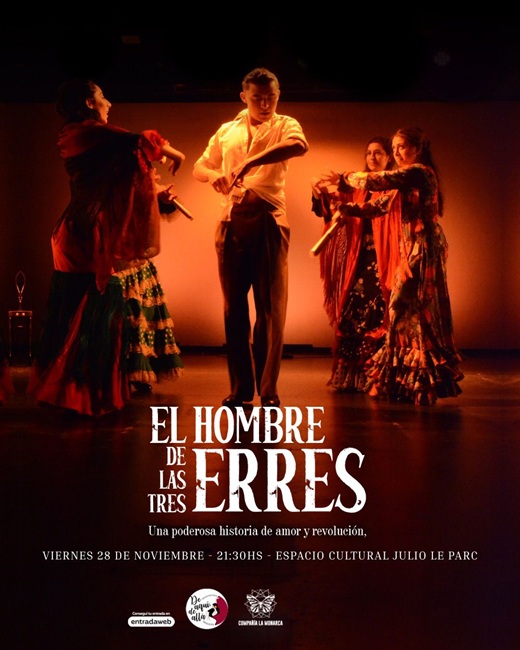 El viernes 28 de noviembre a las 21:30 hs. en el Espacio Julio Le Parc se producirá el estreno de El Hombre de las Tres Erres, el nuevo espectáculo de la Compañía La Monarca y la primera coproducción con el estudio de danzas “De Aquí, De Allá”.