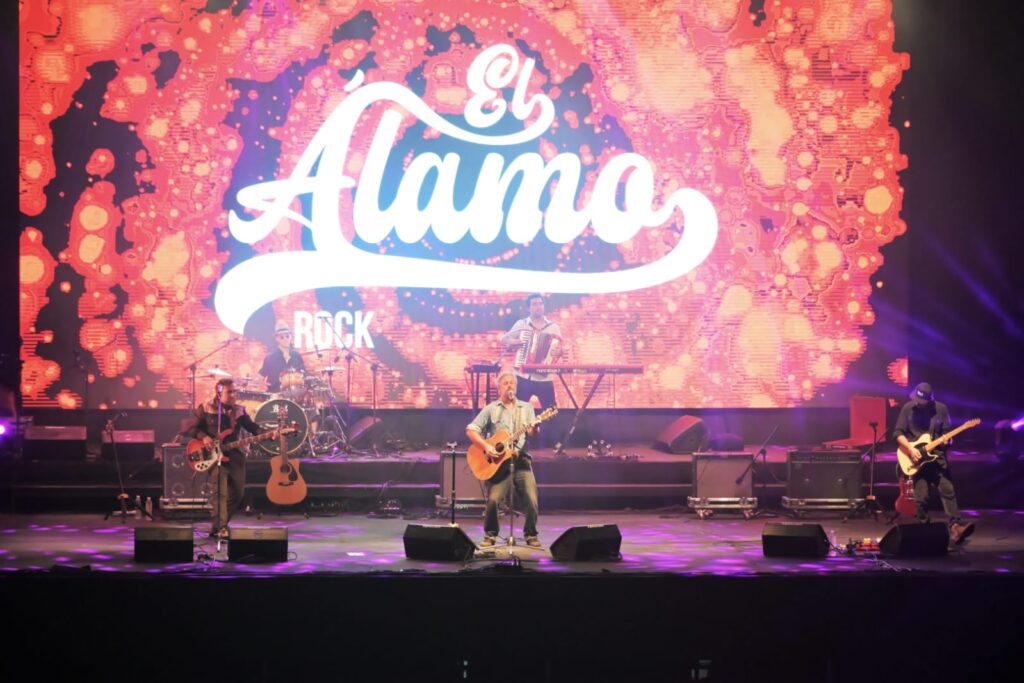 La apertura de la noche estuvo a cargo de El Álamo, banda mendocina de folk, blues y rock and roll, formada en 2001, por la que han pasado destacados músicos de la escena local. A lo largo de su trayectoria, realizó numerosas presentaciones en la provincia y compartió escenario con importantes bandas del ámbito nacional. Actualmente, la formación está integrada por Mauricio “Coco” Cabrini (voz y guitarra), Sebastián Fernández (guitarra líder), Leonardo Pérez (teclados), Mauricio Bertozzi (acordeón), Emiliano Rodríguez (batería) y Dr. Gato Bass (bajo).