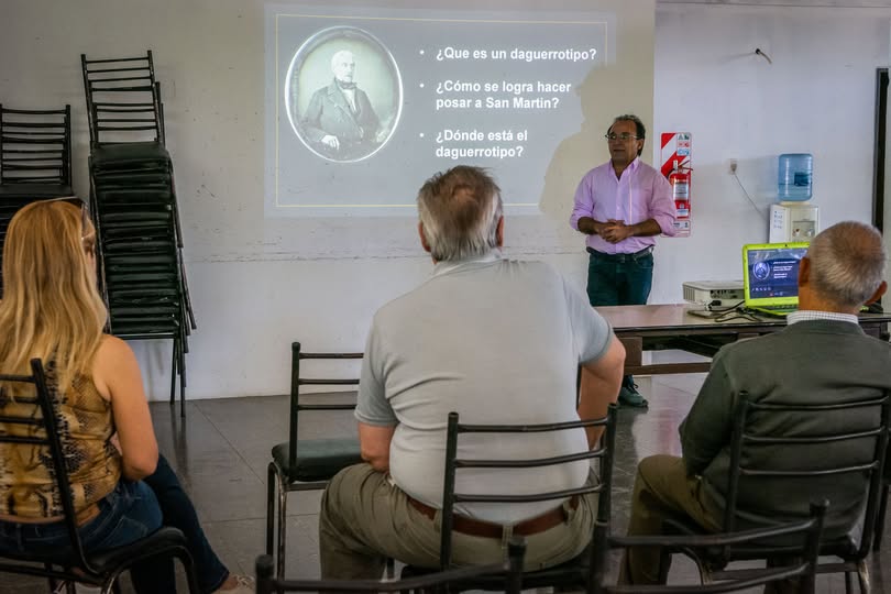 La charla giró en torno a la obra que el autor pictórico donara al Museo Las Bóvedas basada en el daguerrotipo del General San Martín en 1848. Se trata del comienzo de un ciclo de conferencia que se van a dar en toda la provincia.