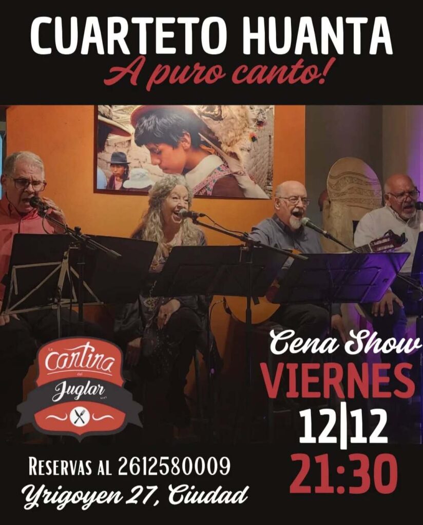 La música popular vuelve a brillar en la Ciudad con una propuesta especial: el reconocido Cuarteto Huanta se presentará en La Cantina del Juglar el viernes 12 de diciembre, a las 21.30 hs., en una cena show pensada para disfrutar de la calidez de la música en vivo y el encuentro.