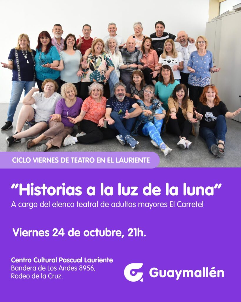 En el marco del ciclo Viernes de Teatro en el Lauriente, la Municipalidad de Guaymallén invita a disfrutar de la obra “Historias a la luz de la luna”, interpretada por el elenco de personas mayores El Carretel, perteneciente al Espacio Teatral del Municipio.