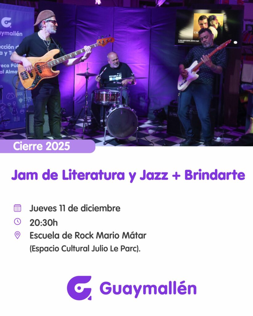 La Municipalidad de Guaymallén invita a vecinos, turistas y amantes del arte a disfrutar del cierre anual de dos de sus ciclos culturales: Jam de Literatura y Jazz + BrindArte.