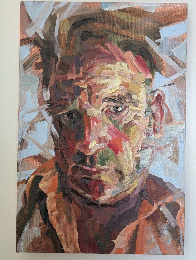 La pintura al óleo es especialmente generosa al representar la piel humana y sus cualidades camaleónicas, similares a las de un lagarto. Mi obra intenta congelar el gesto humano, que normalmente es fugaz, evasivo, engañoso y elusivo. Después de todo, el rostro humano es la máscara más grandiosa de todas.