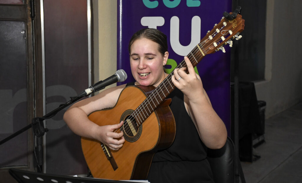 La inauguración contó con una intervención artística en vivo de Iara Giudice, integrante de la Orquesta Municipal de Guitarras Tito Francia.