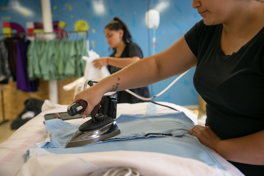 En esta fase inicial, el equipo está enfocado en el diseño y la confección de piezas clave. El proceso comienza con las cortadoras, quienes elaboran los moldes según la cantidad de prendas requeridas para el evento. Luego, las piezas pasan al taller de costureras, continúan en el área de planchado y, finalmente, se almacenan en el depósito, donde posteriormente se realiza la entrega personalizada a los artistas.