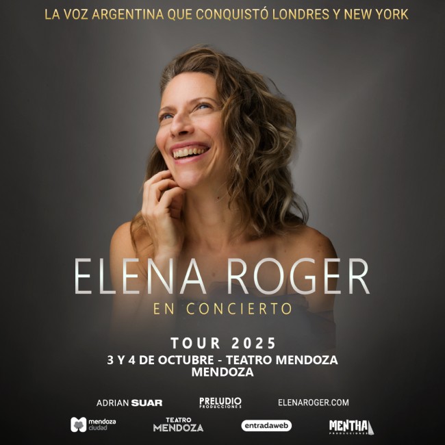 La aclamada artista argentina Elena Roger vuelve con su Tour 2025, que recorrerá Argentina, Chile, España y Uruguay. En Mendoza, ofrecerá dos funciones imperdibles el viernes 3 y sábado 4 de octubre a las 21 horas, en el Teatro Mendoza (San Juan 1427, Ciudad).