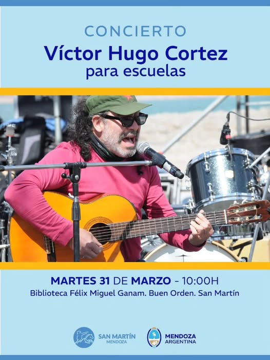 En una propuesta que combina arte, cercanía y energía, el músico Víctor Hugo Cortez llegará a la Biblioteca Félix Miguel Ganam con un concierto especialmente pensado para el público escolar. La iniciativa invita a niños y jóvenes a vivir la música como una experiencia compartida, dinámica y participativa.