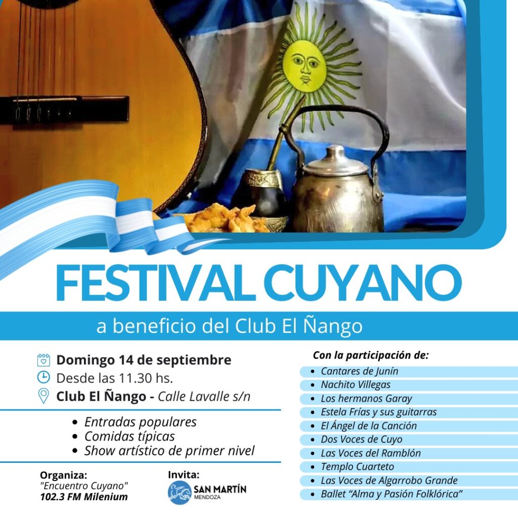 Este Festival Cuyano, auspiciado por la Municipalidad de General San Martín y organizado por la comisión del Club junto al programa Encuentro Cuyano de FM 102.3, tiene como objetivo recaudar fondos para la institución y, al mismo tiempo, celebrar la identidad cultural de la región.