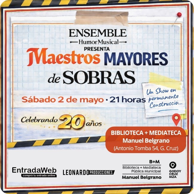 La presentación será el sábado 2 de mayo a las 21, en el Auditorio de la Biblioteca + Mediateca Manuel Belgrano de Godoy Cruz (A. Tomba 54).