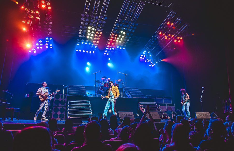 Mientras tanto, el espectáculo propone un viaje directo a los icónicos conciertos de Queen.