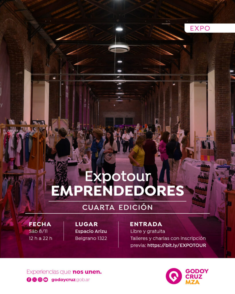 Este sábado 8, se realizará en el Espacio Arizu, de 12 hs. a 22 hs., la 4° Edición de la Expo Tour de Emprendedores. Este ciclo itinerante, creado para celebrar y homenajear a la mujer emprendedora mendocina, es un recorrido que celebra su fuerza creativa.
