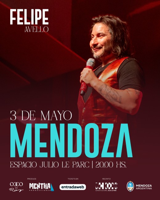 El reconocido comediante chileno Felipe Avello se presentará el próximo domingo 3 de mayo a las 20 horas en el Espacio Cultural Julio Le Parc, en Mendoza. El espectáculo tendrá lugar en la Sala Vilma Rúpolo y promete una noche cargada de risas, improvisación y cercanía con el público.