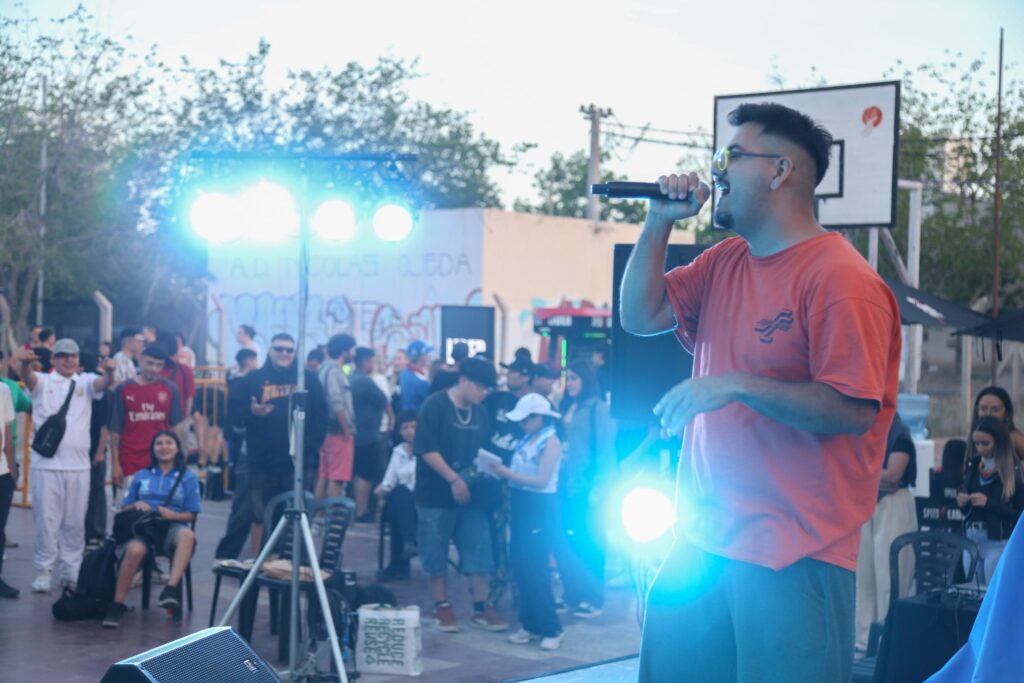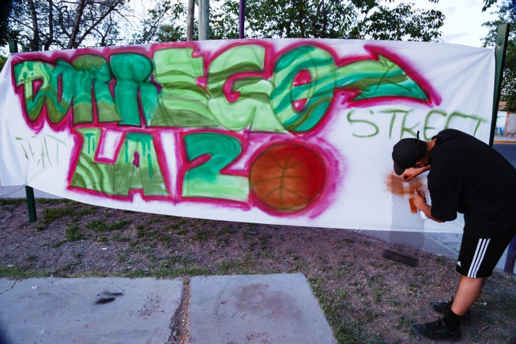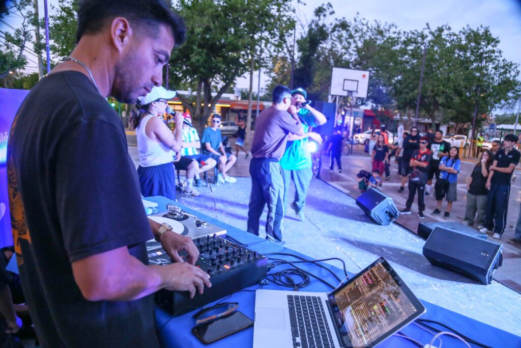 La primera locación elegida para la actividad fue el Playón Municipal de Dorrego, ubicado en Moldes y Boulevard Dorrego. La jornada comenzó con un torneo de básquet 3×3, abierto a todo público. Luego, se dio lugar a las batallas de freestyle, que contaron con la presencia de reconocidos artistas de la escena urbana local.
