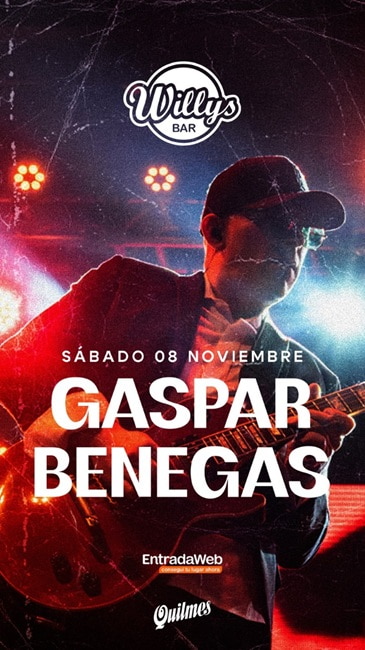 El destacado guitarrista argentino Gaspar Benegas se presentará en Mendoza con un recorrido íntimo y acústico por las canciones que marcaron su trayectoria. La cita será el sábado 8 de noviembre, a las 22 horas, en Willys Bar (Mitre 1371, Chacras de Coria).