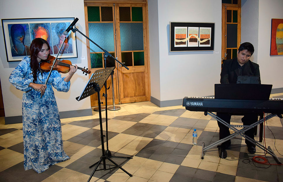 Los presentes pudieron recorrer y admirar cada uno de los cuadros y, mientras tanto, la violinista Sariah Moreira y el pianista Ruy Facó protagonizaron el momento musical, con un repertorio de música de cámara.