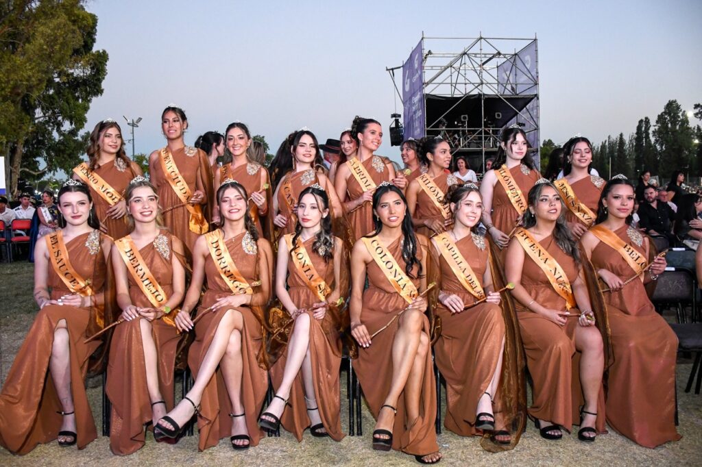 • Donatella Borrini, de San José, tiene 22 años, es estudiante de Derecho en la Universidad Champagnat y emprendedora en el mundo de los accesorios de moda, con su marca Dogio Accesorios, y también en gastronomía, con Miladona. Además, es bailarina de folklore, lo que refleja su profunda conexión con las tradiciones de la región. Su objetivo es representar el esfuerzo de los viñateros y transmitir su amor por la tierra que la vio crecer. «Es un honor poder visibilizar el esfuerzo de tantas personas que día a día trabajan para que Guaymallén sea reconocido como un lugar lleno de historia y cultura», expresó Donatella tras su victoria.