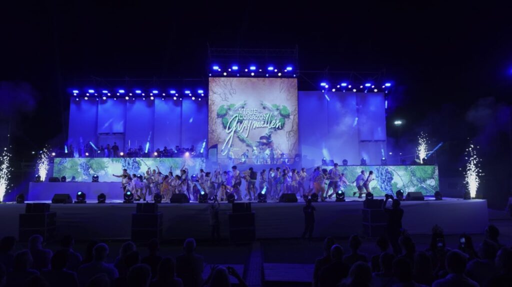 El espectáculo, «Viaje al Corazón de Guaymallén», inició con la emblemática Canción de Guaymallén, donde versos de amores y paisajes, acompañados por una pantalla que mostraba la belleza del lugar, sumergieron al público en una atmósfera vibrante. A lo largo de la noche, los cuadros artísticos repasaron los elementos clave de la identidad del departamento, desde sus raíces históricas hasta su vitalidad actual.