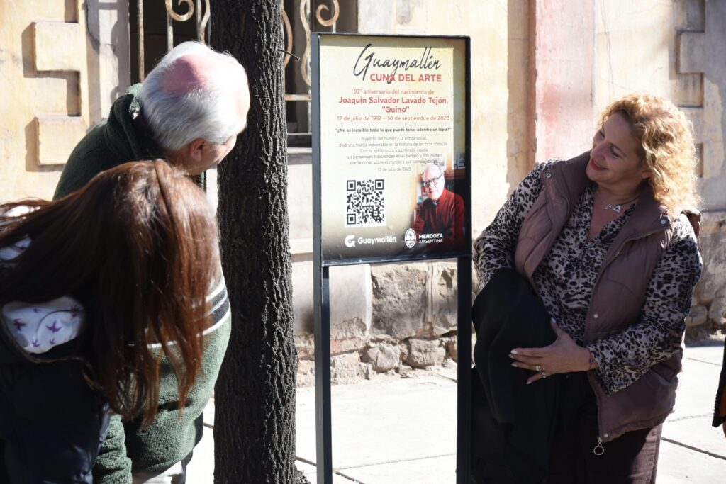 En el marco del ciclo “Guaymallén, cuna del arte”, la Municipalidad realizó un nuevo homenaje al cumplirse 93 años del natalicio de uno de los artistas maestros que ha sido parte de la historia del departamento y ha dejado un gran legado para la cultura mundial. Este 17 de julio se destaca de manera especial la figura del reconocido dibujante Joaquín Salvador Lavado Tejón, mejor conocido como “Quino”. Por este motivo, se realizó el descubrimiento de una placa recordatoria en la vereda donde se ubica una de las casas donde transcurrió su infancia, en el distrito San José.