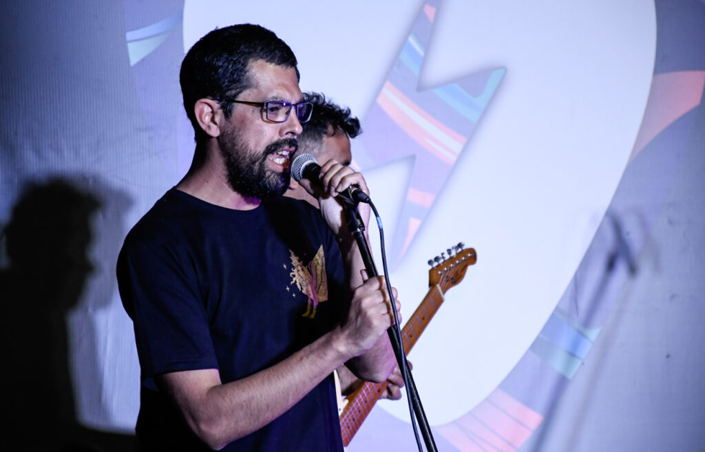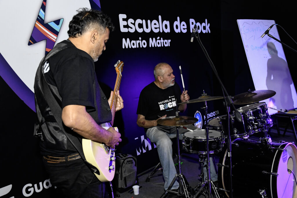 Los músicos David “Zurdo” Paz (baterista), Federico Zuin (bajista) y Juanci Moreno (bajista y guitarrista) se unieron a los profesores Frank Morán y Nicolás Garro en la sede de la Escuela de Rock Mario Mátar para brindar un encuentro con diferentes consignas de escritura y lectura en vivo y un cierre especial con la lectura de un poema colectivo.
