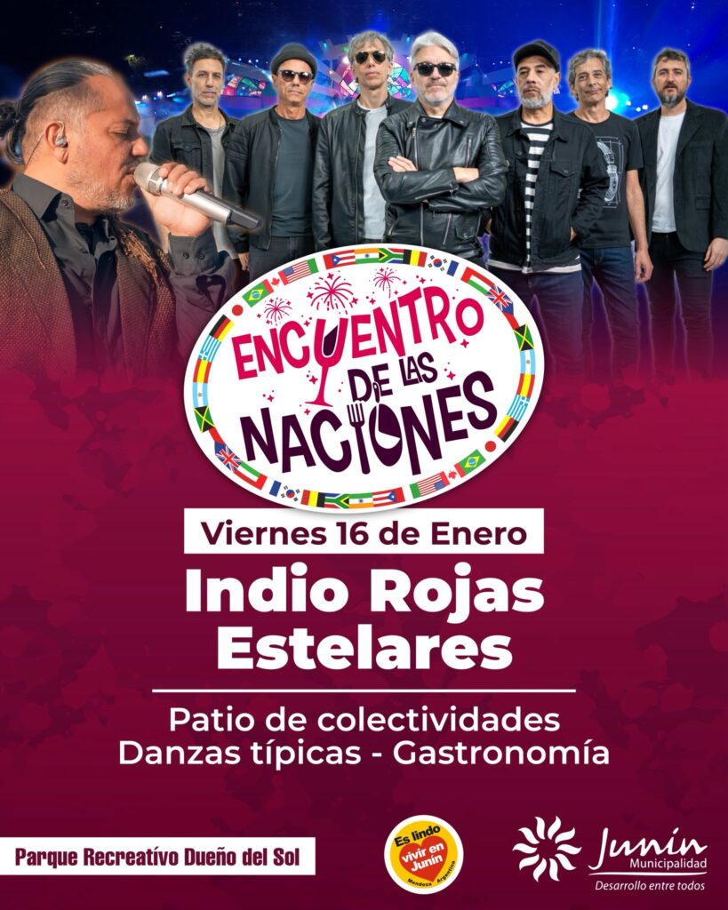 El viernes 16 de enero tendrá lugar el Encuentro de las Naciones, una propuesta que invita a recorrer el patio de colectividades con danzas típicas y gastronomía característica de distintas culturas. La jornada contará además con la presencia de artesanos y emprendedores locales, sumando identidad y color al paseo. En el escenario principal se presentarán Indio Rojas y Estelares, en una noche con entrada gratuita para disfrutar en familia.