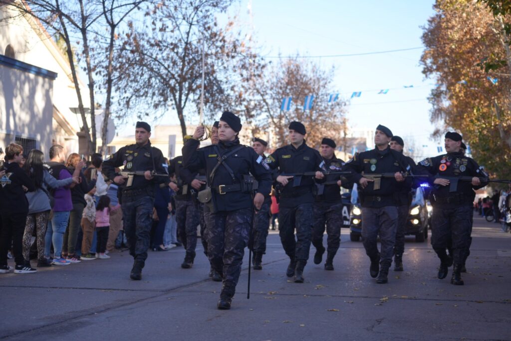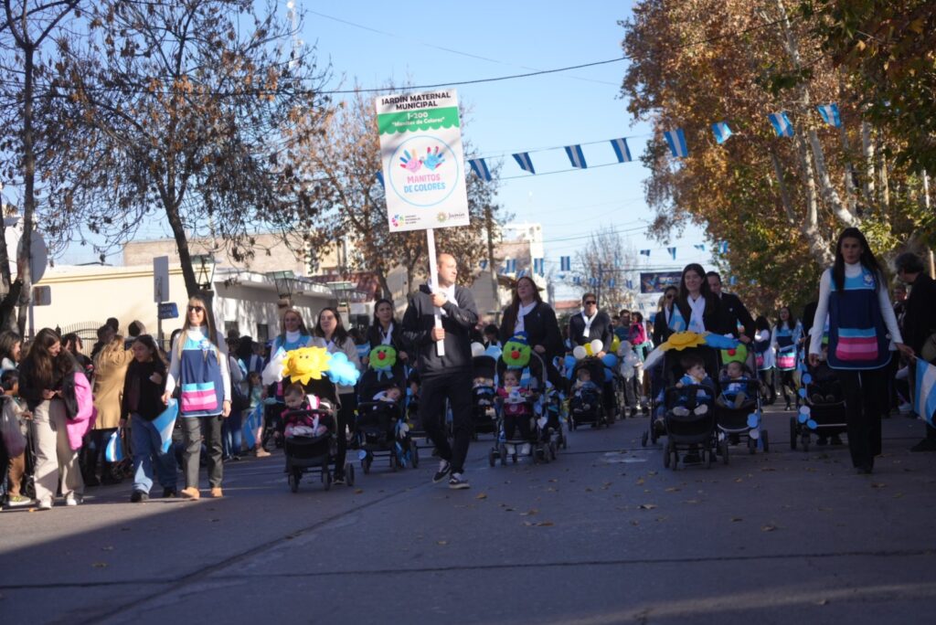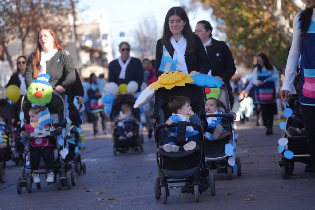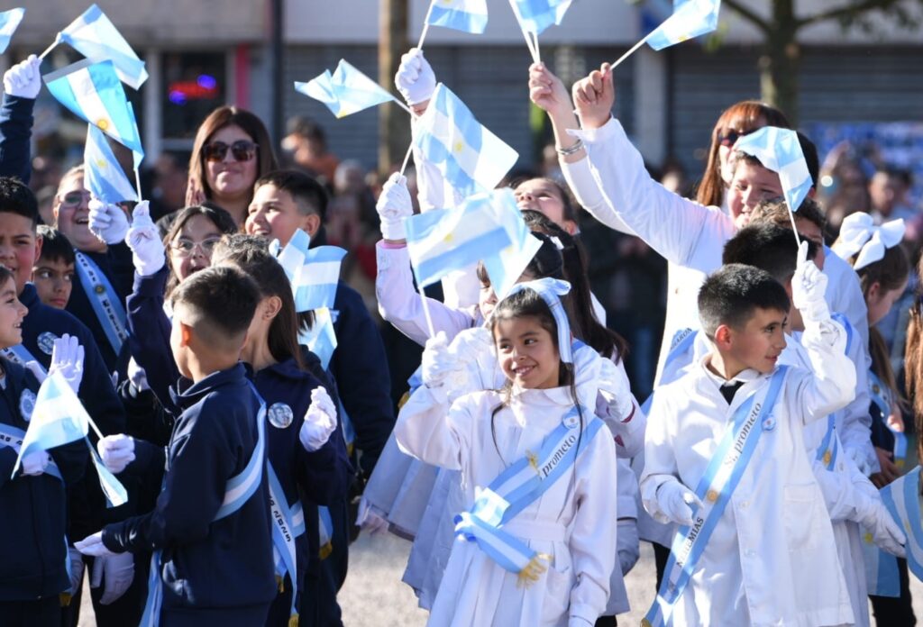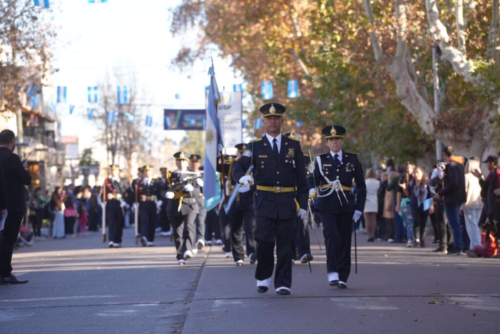 El desfile cívico-militar fue otro de los puntos destacados, con la participación de jardines maternales, escuelas, ballets folklóricos, agrupaciones de danza, deportistas, policías, bomberos voluntarios y bandas de música. El recorrido se extendió por la calle 25 de Mayo hasta llegar a la plaza Italia, donde se sumó un colorido paseo de artesanos y puestos gastronómicos.