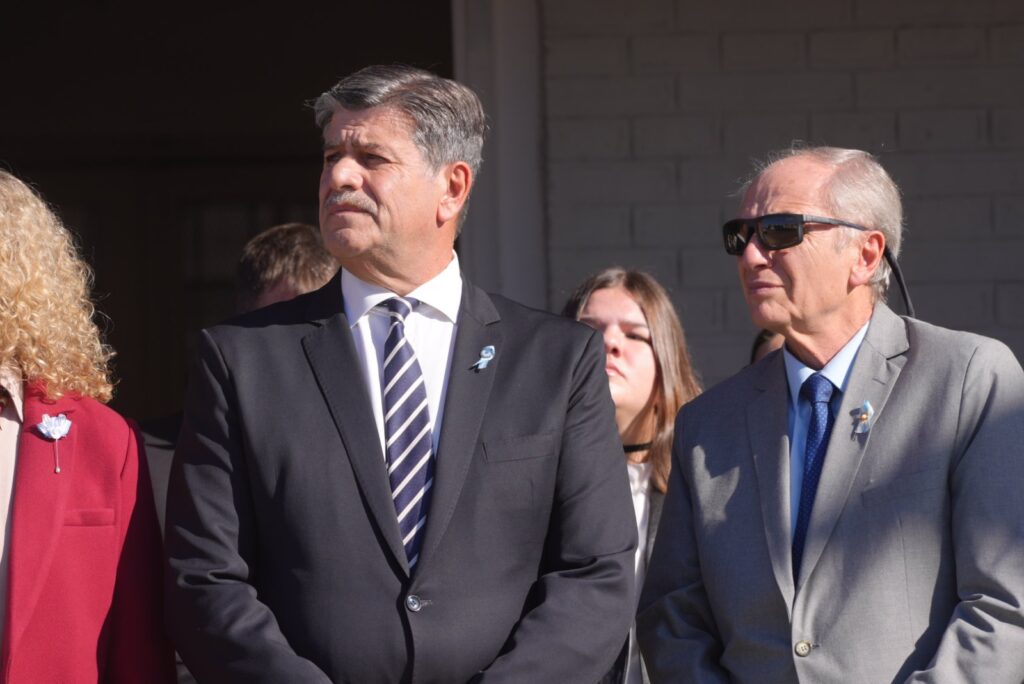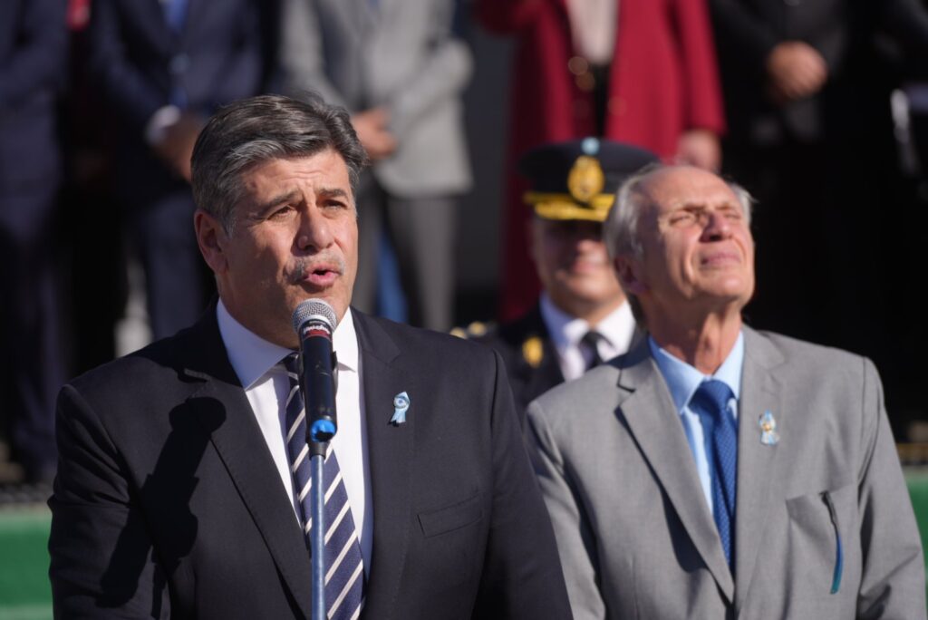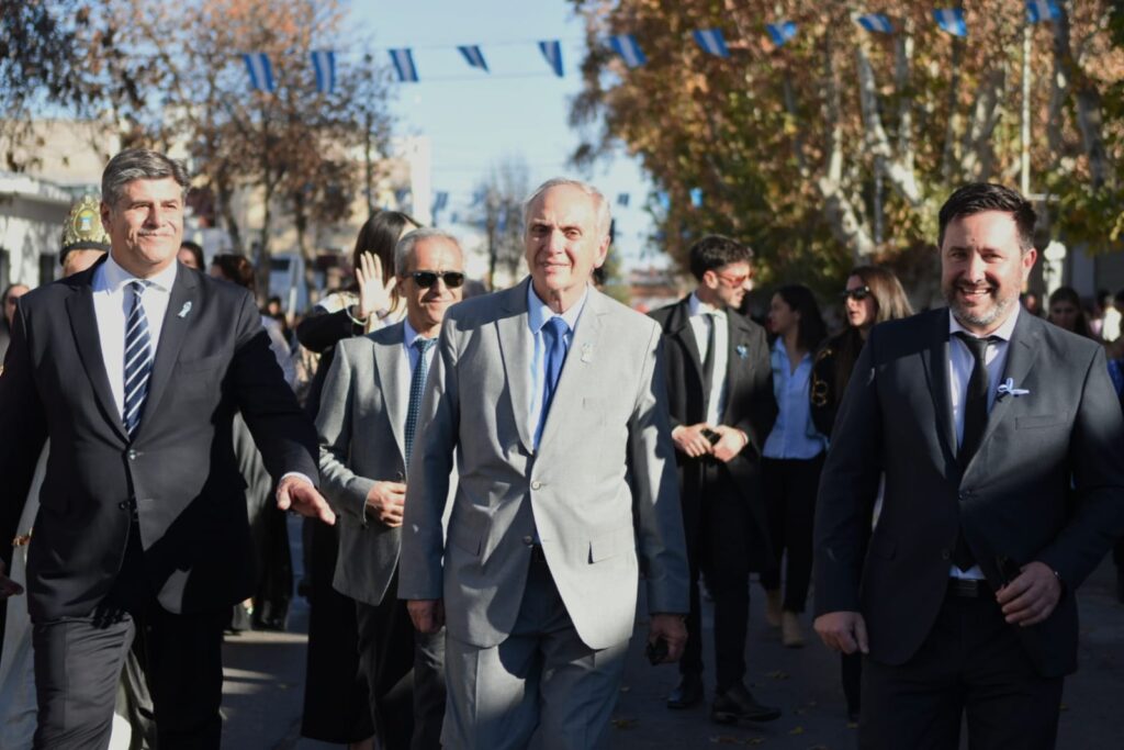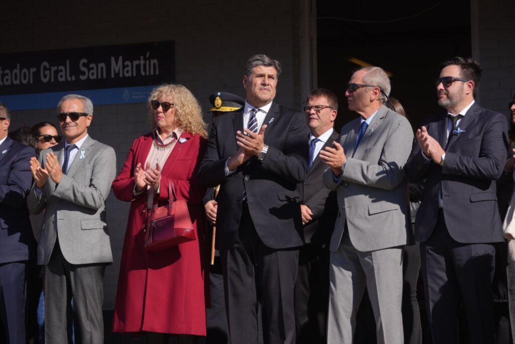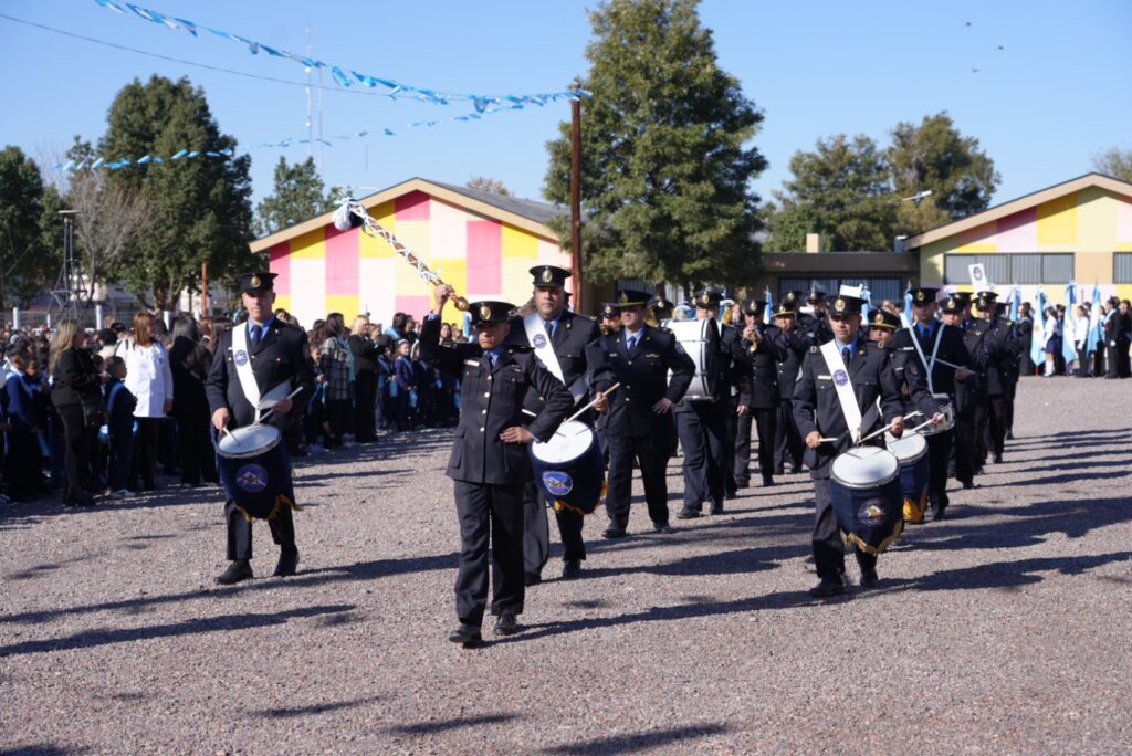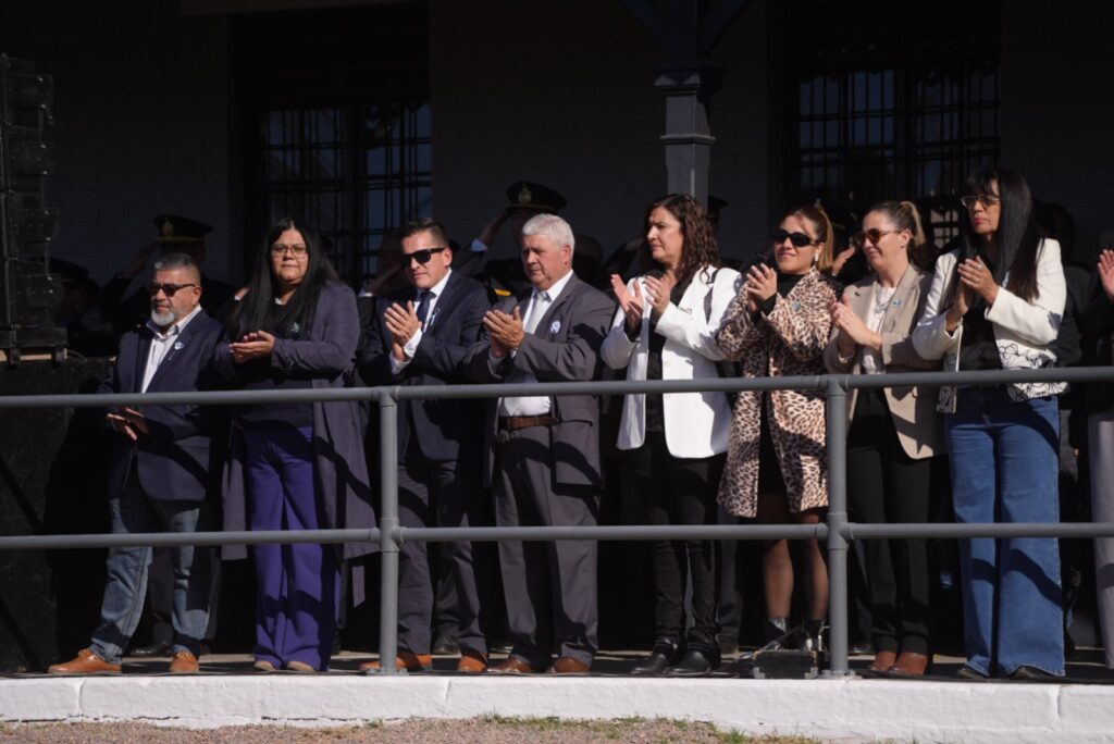 El acto oficial se llevó a cabo en el predio del Centro Universitario del Este, en La Colonia, bajo un cielo celeste y blanco que se replicaba en las banderas, la vestimenta de los presentes y el espíritu de unidad. Encabezaron la ceremonia los intendentes Raúl Rufeil (San Martín) y Mario Abed (Junín), acompañados por autoridades provinciales, concejales, funcionarios municipales, representantes de fuerzas de seguridad, reinas vendimiales y una amplia representación de vecinos.