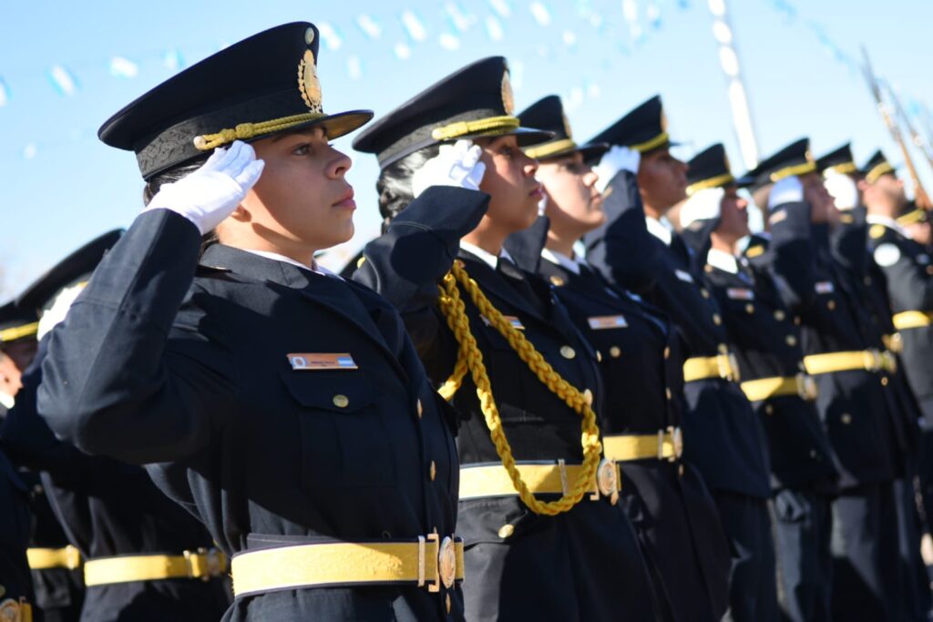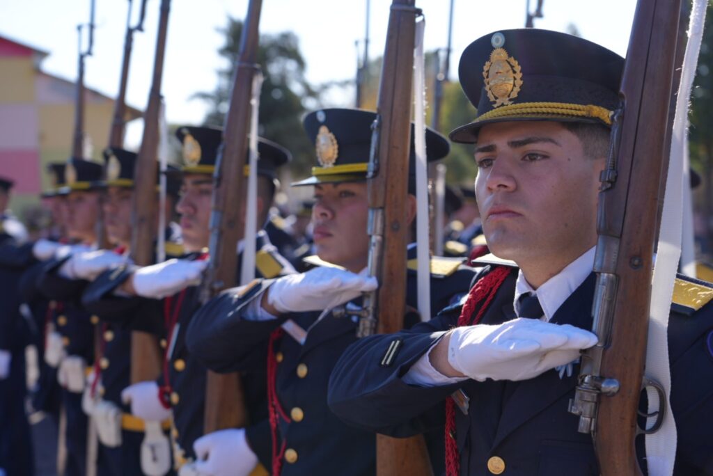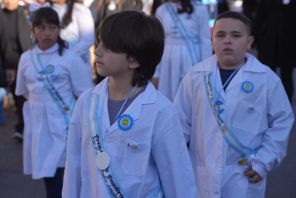 Uno de los momentos más significativos del evento fue la tradicional promesa y jura a la Bandera, protagonizada por alumnos de 4º grado, estudiantes secundarios y cadetes del Instituto Universitario de Seguridad Pública. La emoción de las familias fue palpable, como la de Mario Vargas, padre de uno de los cadetes: “Estoy muy emocionado. Para nosotros es un orgullo”.
