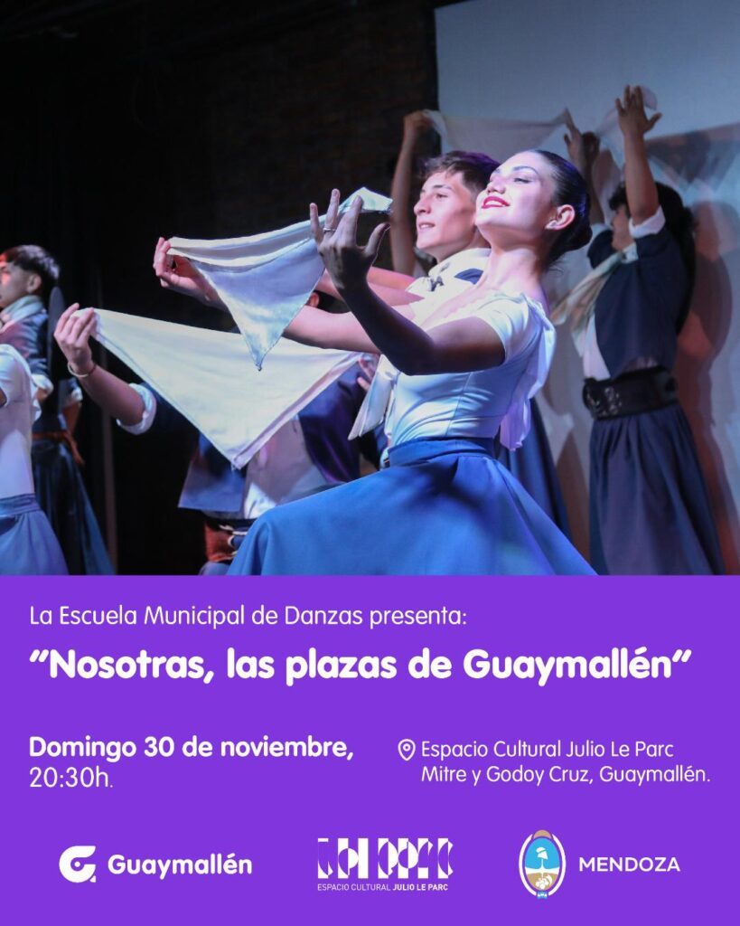 La Escuela Municipal de Danzas de Guaymallén invita a disfrutar de su muestra anual “Nosotras, las plazas de Guaymallén”, un espectáculo que celebra el arte, la identidad y el encuentro a través de la danza.