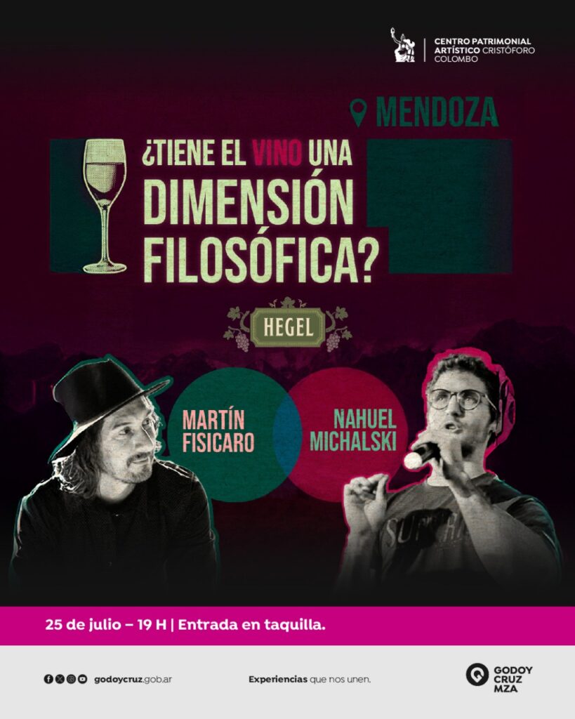 Con el interrogante “¿Tiene el vino una dimensión filosófica?” como disparador, el público podrá ser parte de este evento en el Centro Cristoforo Colombo (A. Tomba 246), el día 25 de julio a las 19 hs.