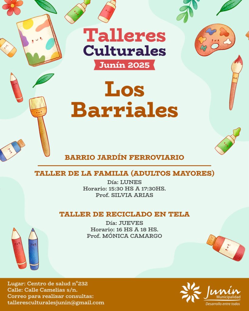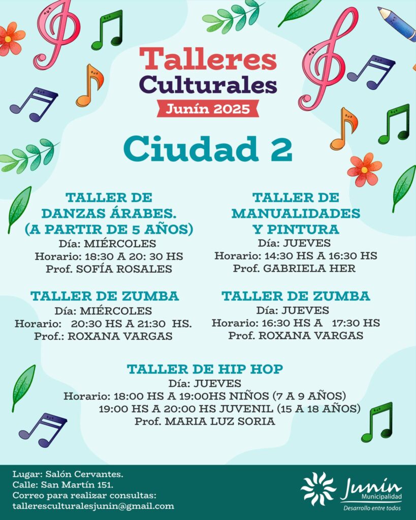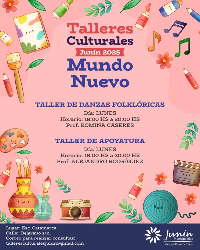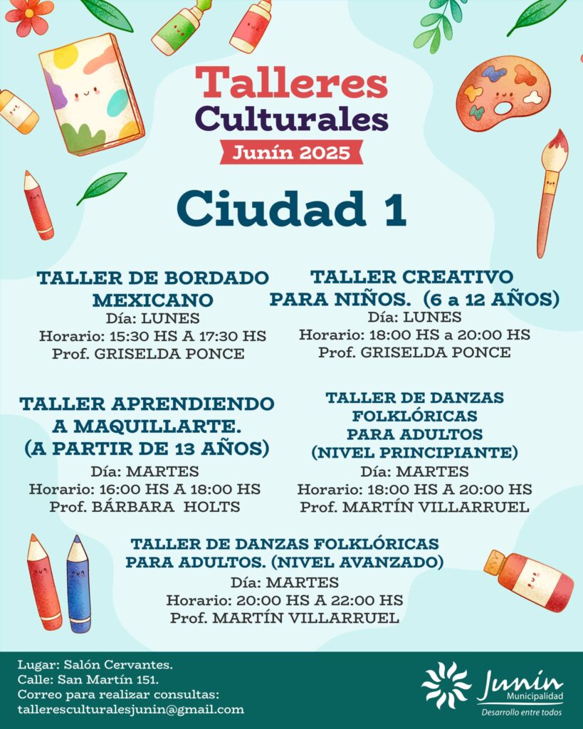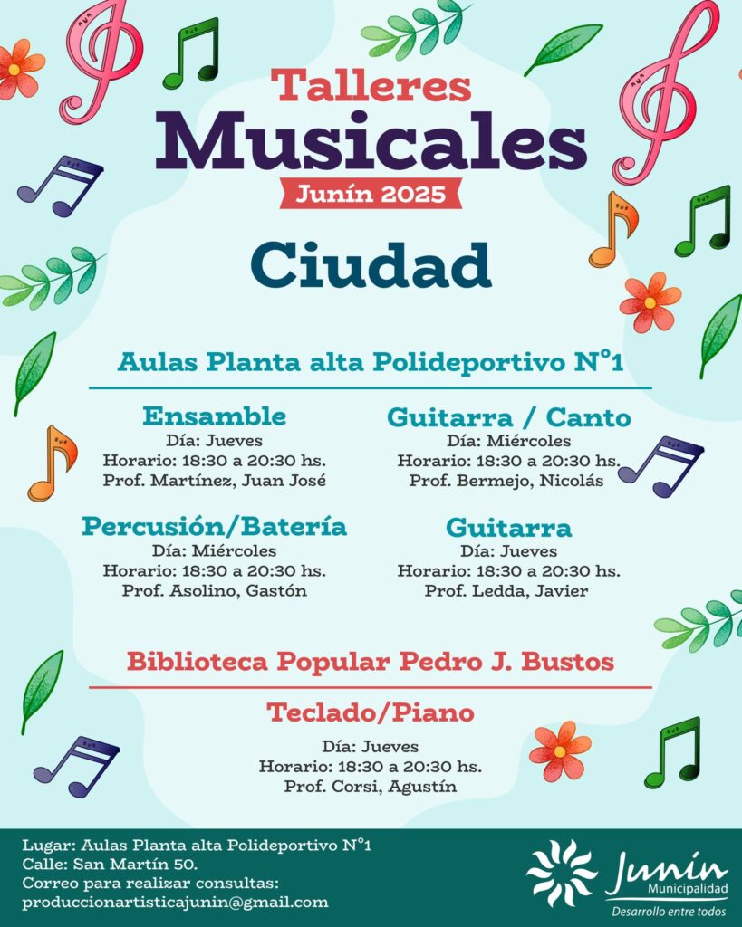 La Municipalidad de Junín informó que ya se encuentra habilitada la inscripción para los Talleres Culturales y Musicales 2025, una iniciativa que se desarrollará en todos los distritos del departamento con el propósito de fomentar el arte, la música y la creatividad entre los vecinos.