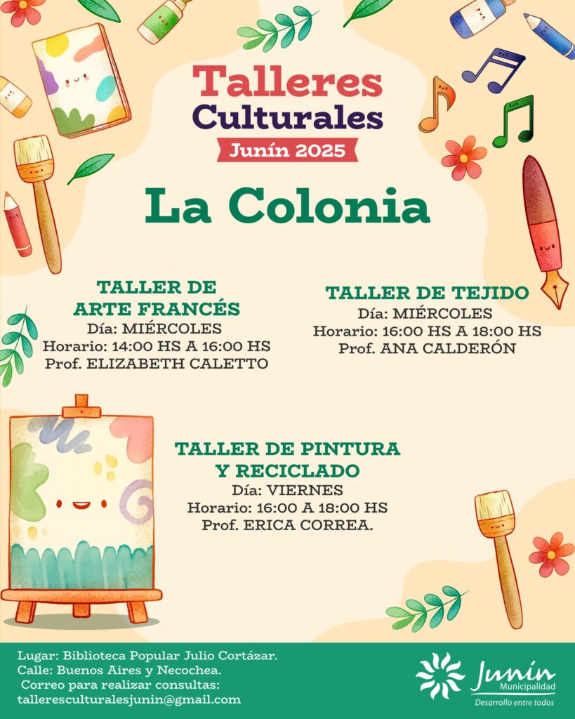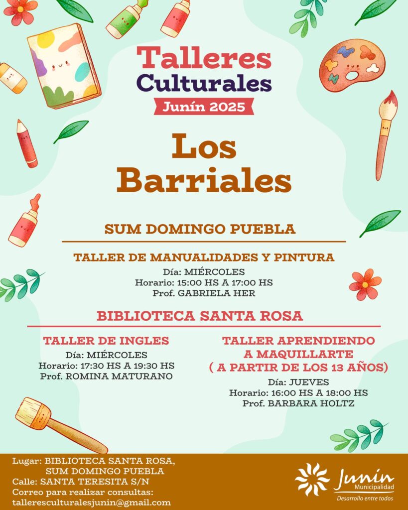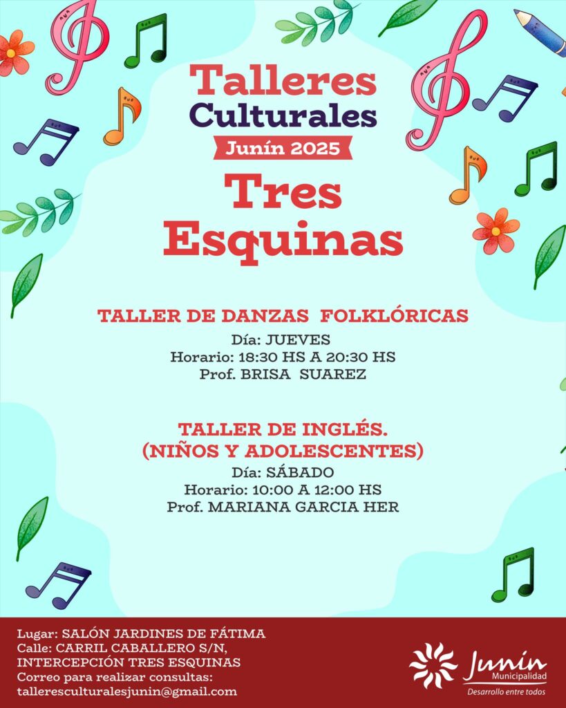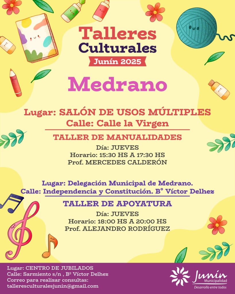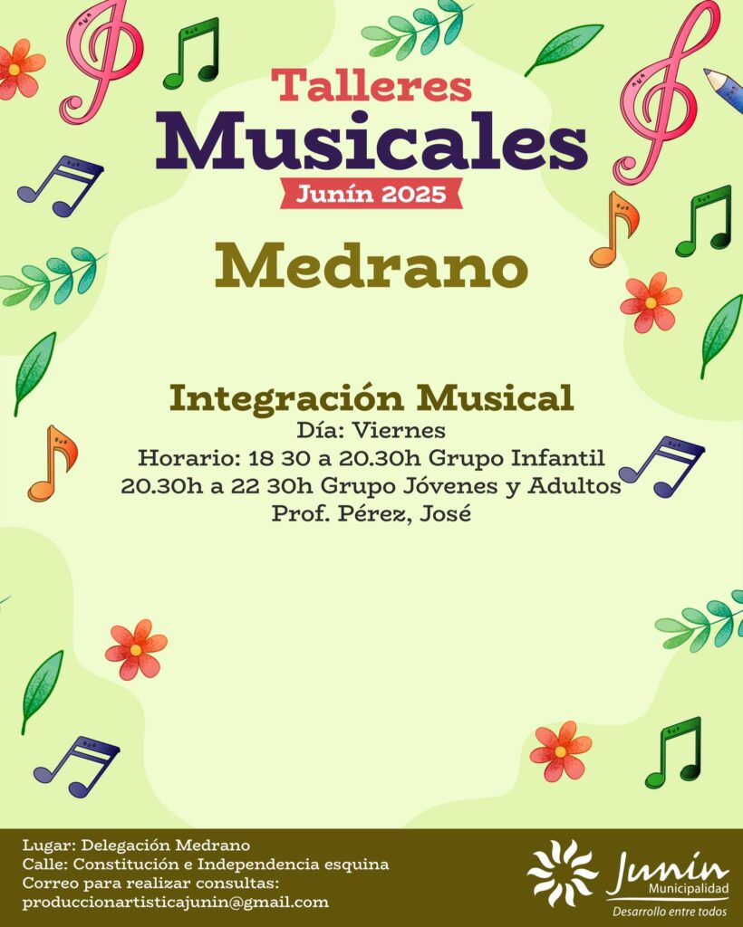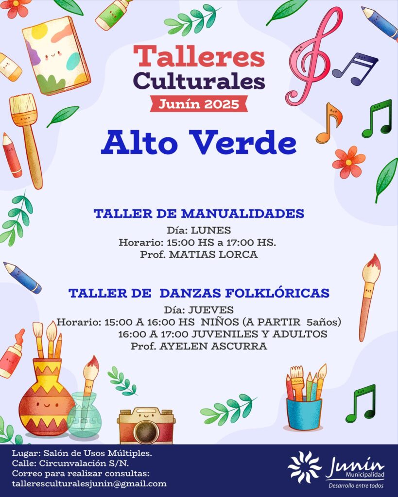La Municipalidad de Junín informó que ya se encuentra habilitada la inscripción para los Talleres Culturales y Musicales 2025, una iniciativa que se desarrollará en todos los distritos del departamento con el propósito de fomentar el arte, la música y la creatividad entre los vecinos.