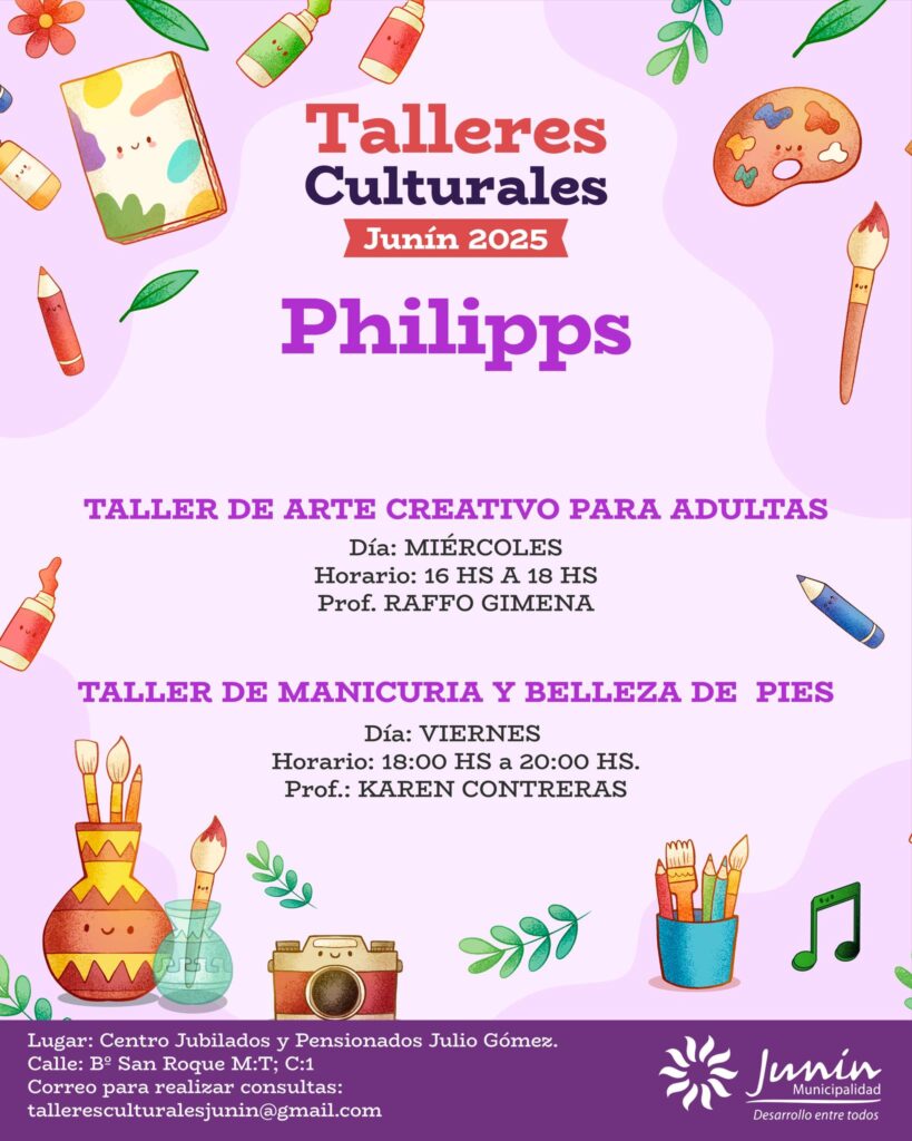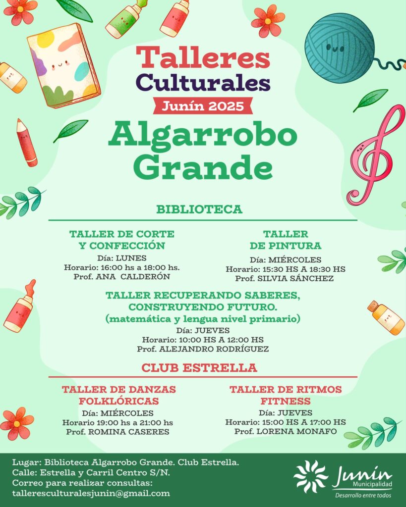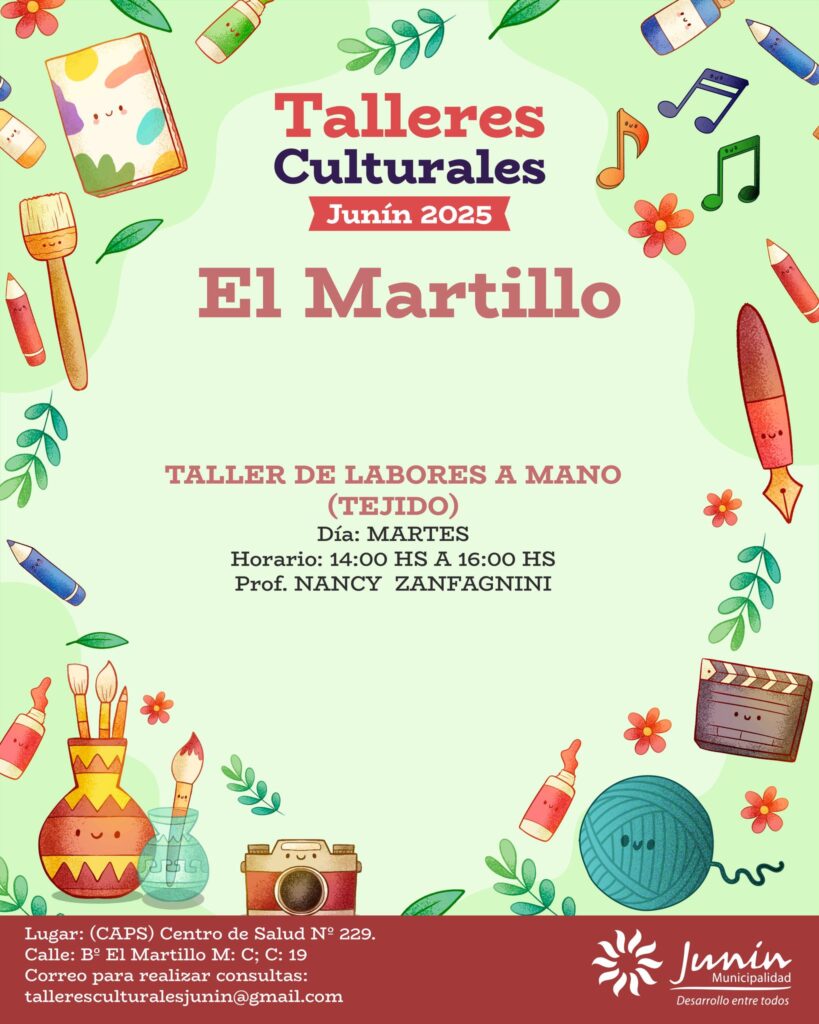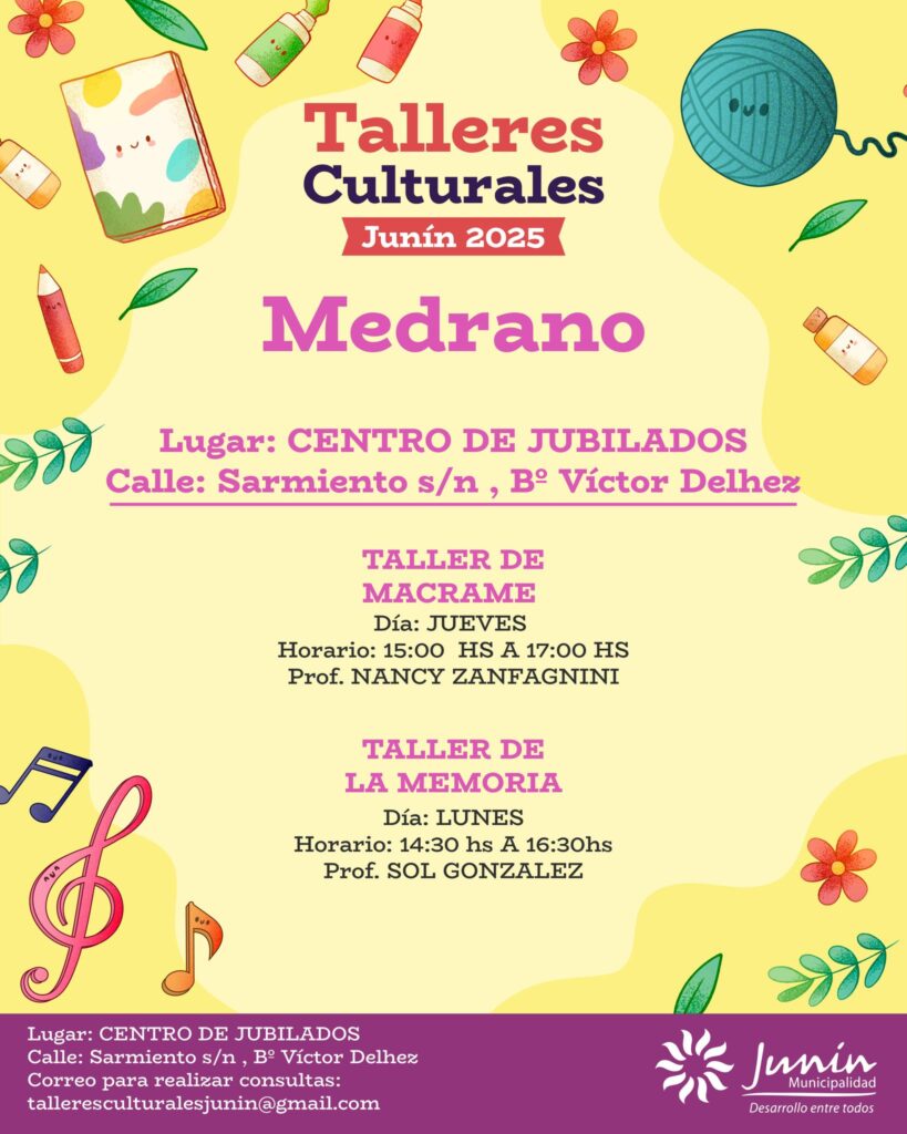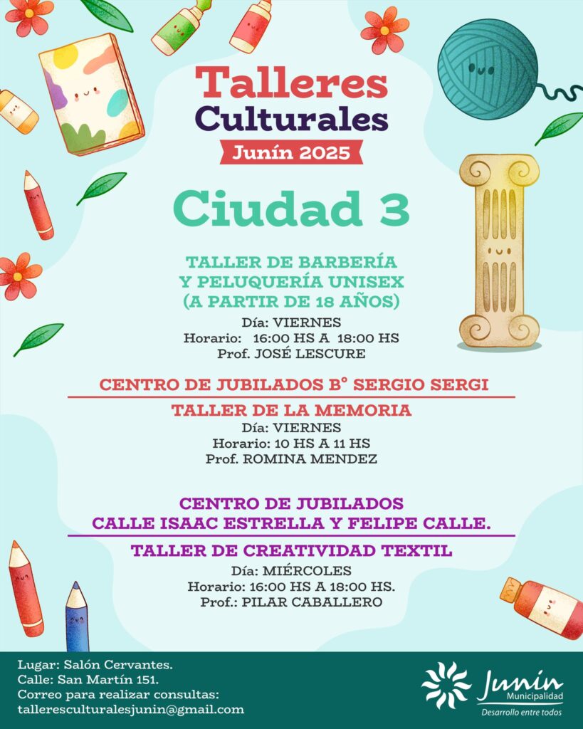 La Municipalidad de Junín informó que ya se encuentra habilitada la inscripción para los Talleres Culturales y Musicales 2025, una iniciativa que se desarrollará en todos los distritos del departamento con el propósito de fomentar el arte, la música y la creatividad entre los vecinos.