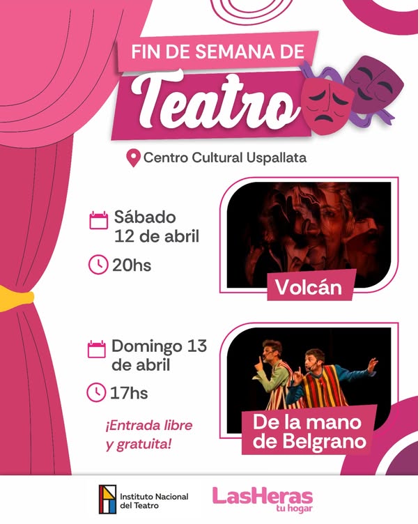 La Municipalidad de Las Heras invita a disfrutar de un fin de semana lleno de cultura en el corazón de la cordillera. El Centro Cultural Uspallata se viste de teatro con dos propuestas imperdibles, pensadas para todas las edades.